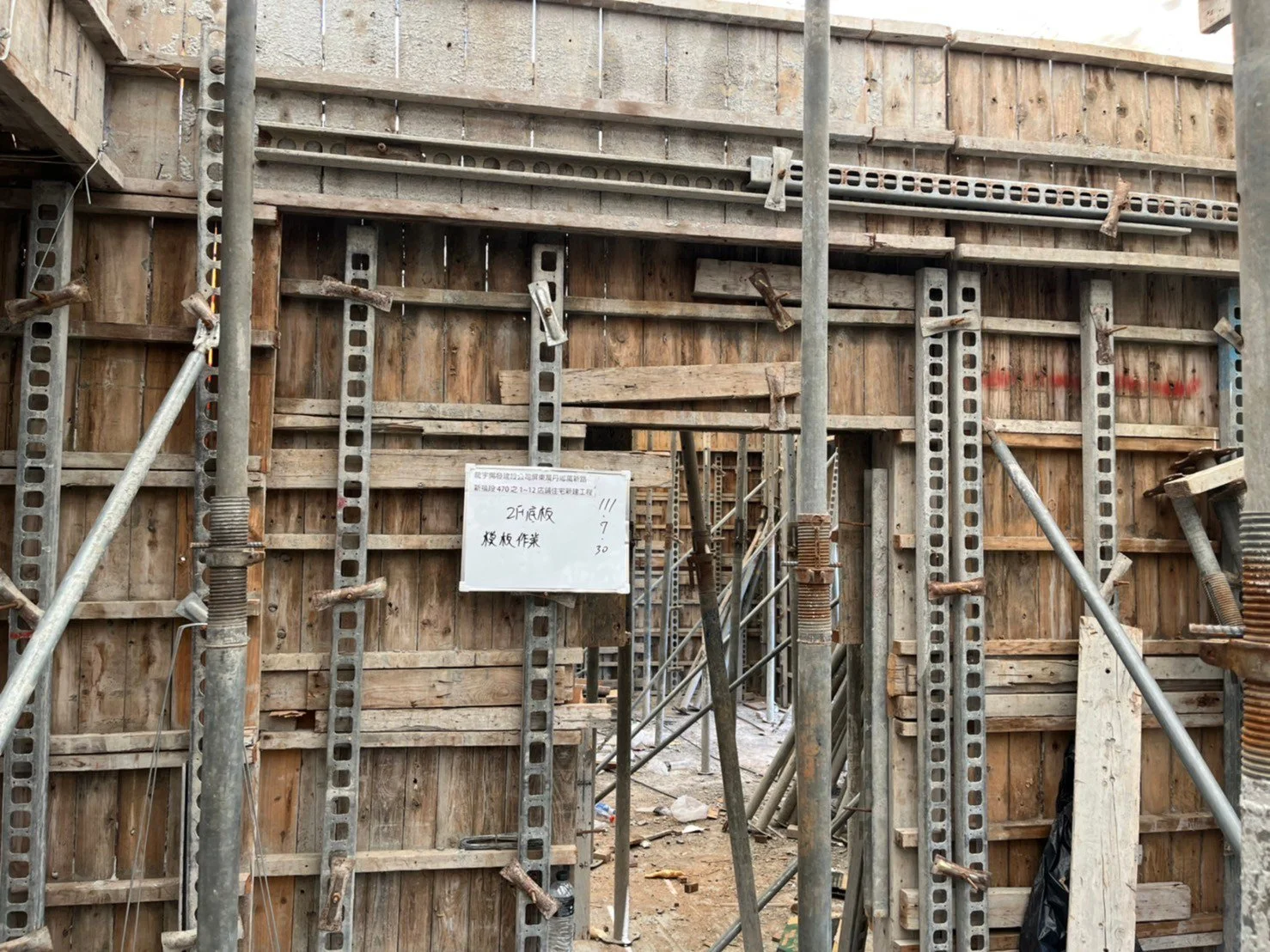 本月工程:一樓頂模鋪版,一樓頂板灌漿,二樓底板模板作業,二樓底板鋼筋綁札及水電配管工程等。